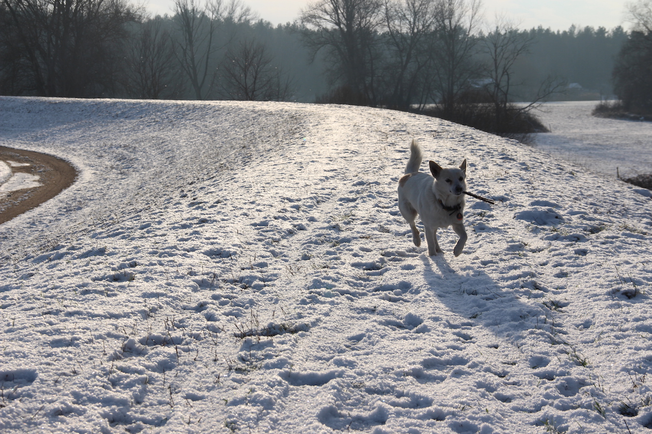 Brrrrr it was cold today at the stable! -10 degrees. I had this great idea of taking my horse for a walk in the snow, but when I went to get him from the paddock, he looked at me like “Well, have fun!” So I went out with the stable dogs instead. The snow was super crunchy and the dogs leapt and rolled an ran, I could hardly keep up! (Click to enlarge)