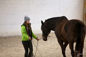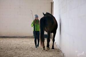 During the groundwork education, we have to take care that our body aids and micro signals do not contradict our secondary aids and macro signals. Horses are experts in reading micro signals, whereas we humans focus more on macro signals, which can lead to a miscommunication. During the exercises, it is important to come to the point quickly and then give the horse a break when he did well. This way we keep the horse motivated and in a thinking frame.