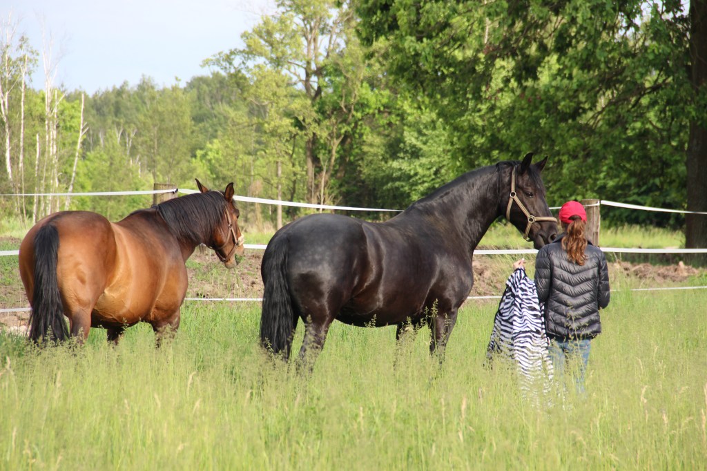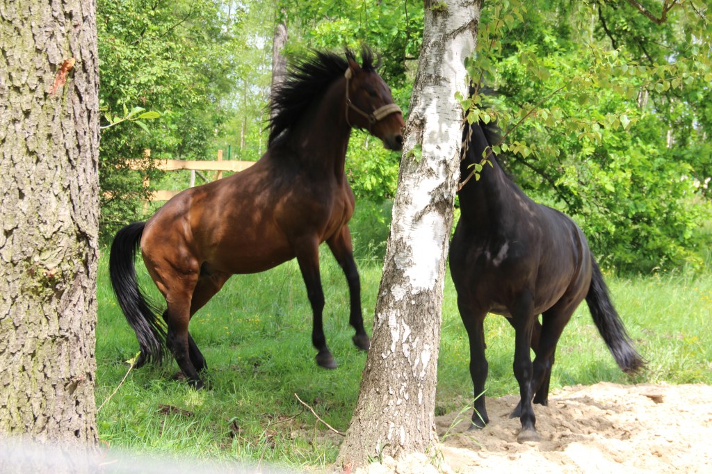 Ten days ago, Nazir and Weto moved to a new stable and it looks like our dream becomes reality. The new place, called Universe Horse Center, is situated in the north of the Warsaw area, in the middle of the amazing Kampinos National Park. Here, Asia, the owner, is fulfilling her own dream of an equestrian center and she has agreed to provide an area of her land for my horses and some friends’s horses, in which we can basically “do what we want”. How cool is that! Our little stable is still under construction; however, the basic structure is already there: a shelter, hay nets and a big field. A second shelter and a hay feeder will come soon, and for autumn/winter we will have to think about how to avoid too much mud, as the area is naturally quite humid.