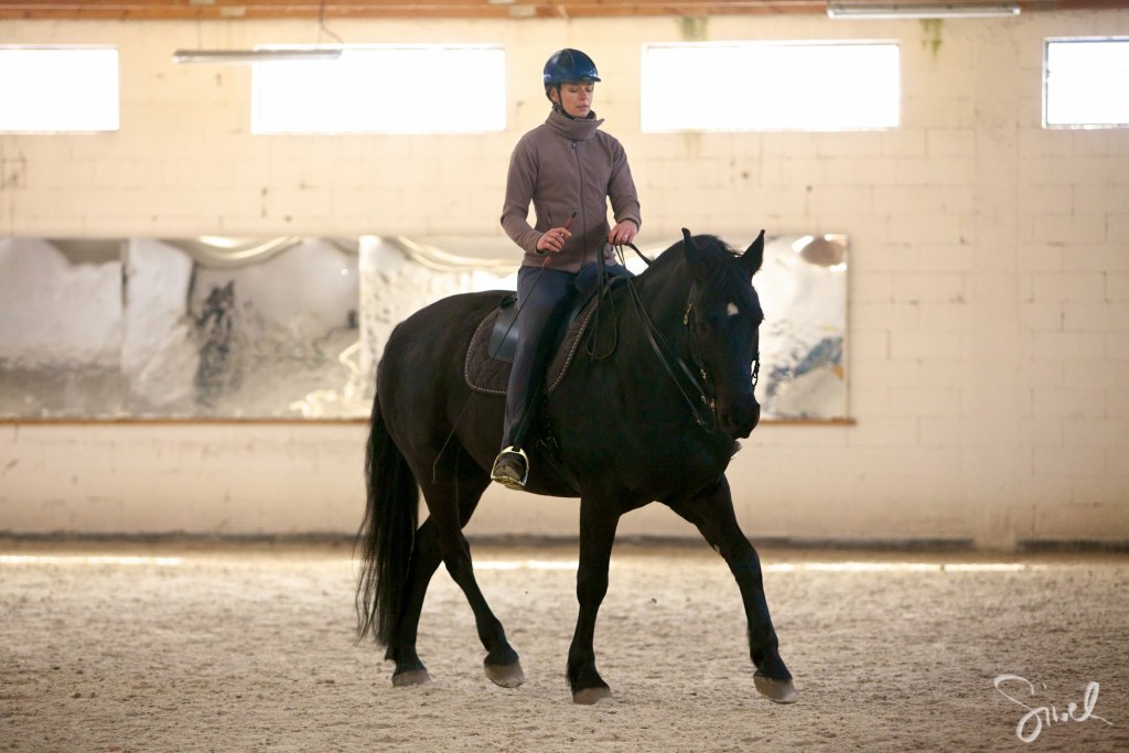 When I was a working student at Bent Branderup’s place, he was talking about collection with one of the week students. I was sitting in my armchair, wrapped in a blanket, and being relaxed and enjoying my break. Then Bent asked me to stand up. So I stood up, most weight on one leg and the other leg bend slightly in the knee, one hip hanging. He asked me to sit again. So I sat, making myself comfortable again. But he asked me to stand up again. This time, when I was standing, I left the weight on both legs, waiting what would happen next. As I already half expected, he asked me to sit down. Also while sitting, I half expected to get up again, so I didn’t sit like on the couch but with weight on both seat bones, balanced, ready to get up. Then Bent said: “And this is collection. When you are standing, you are ready to sit, and when you are sitting, you are ready to stand. When the horse canters, he must canter in a way that at every moment he is able to do something else. He expects to go to trot, to the halt, to the piaffe. In the same way, he must be able to do piaffe in a way that he can go forward any time.”