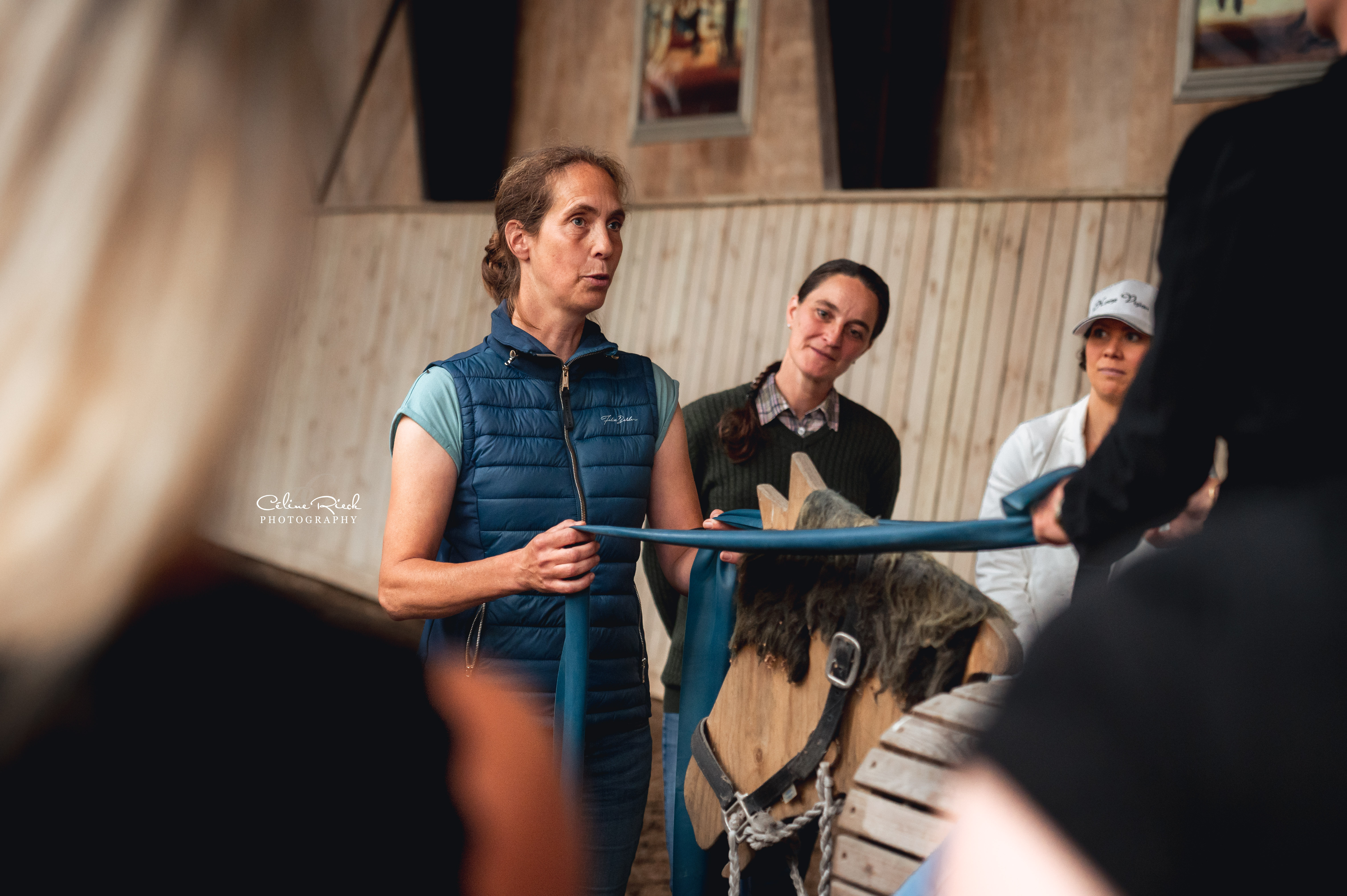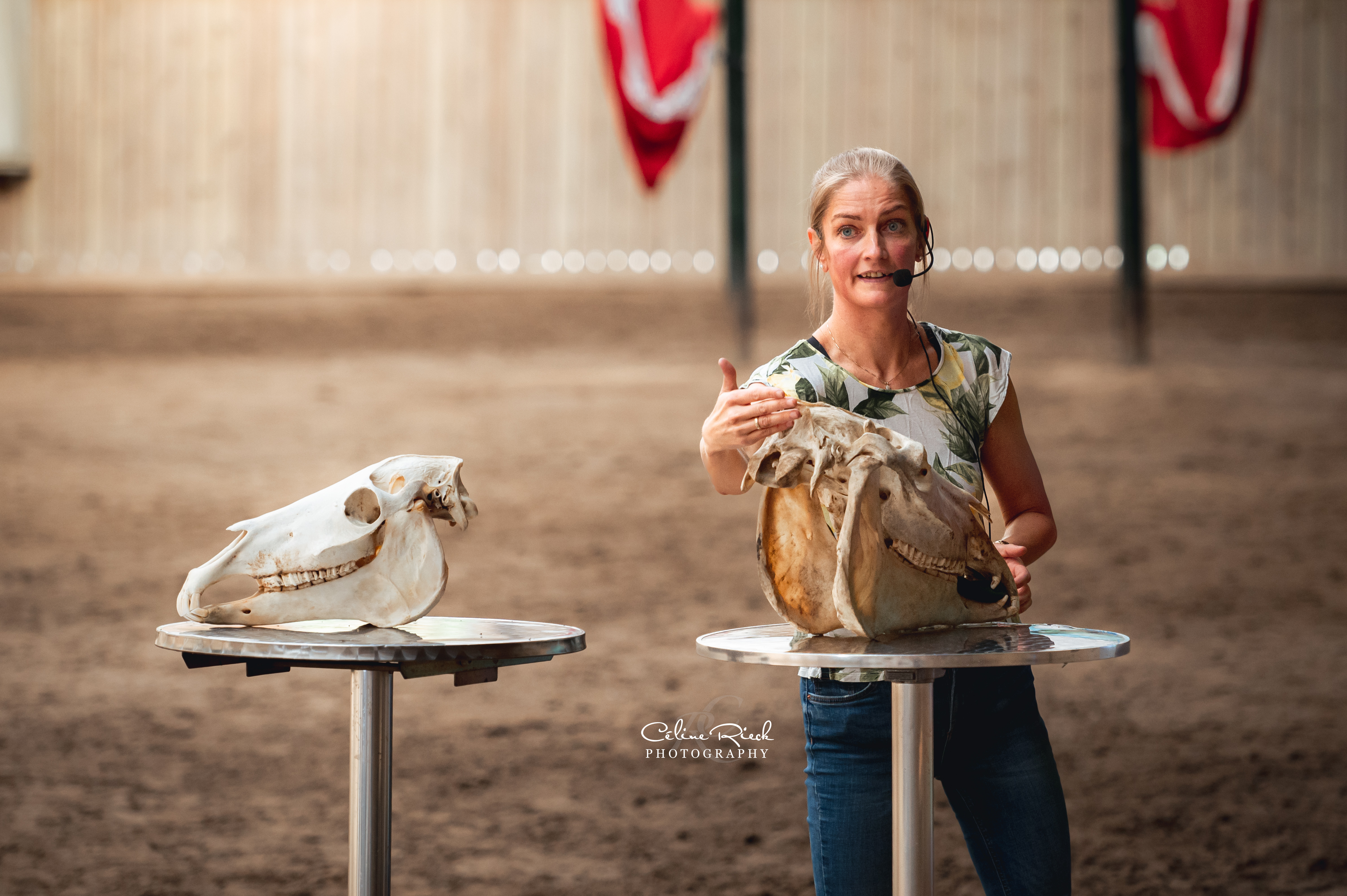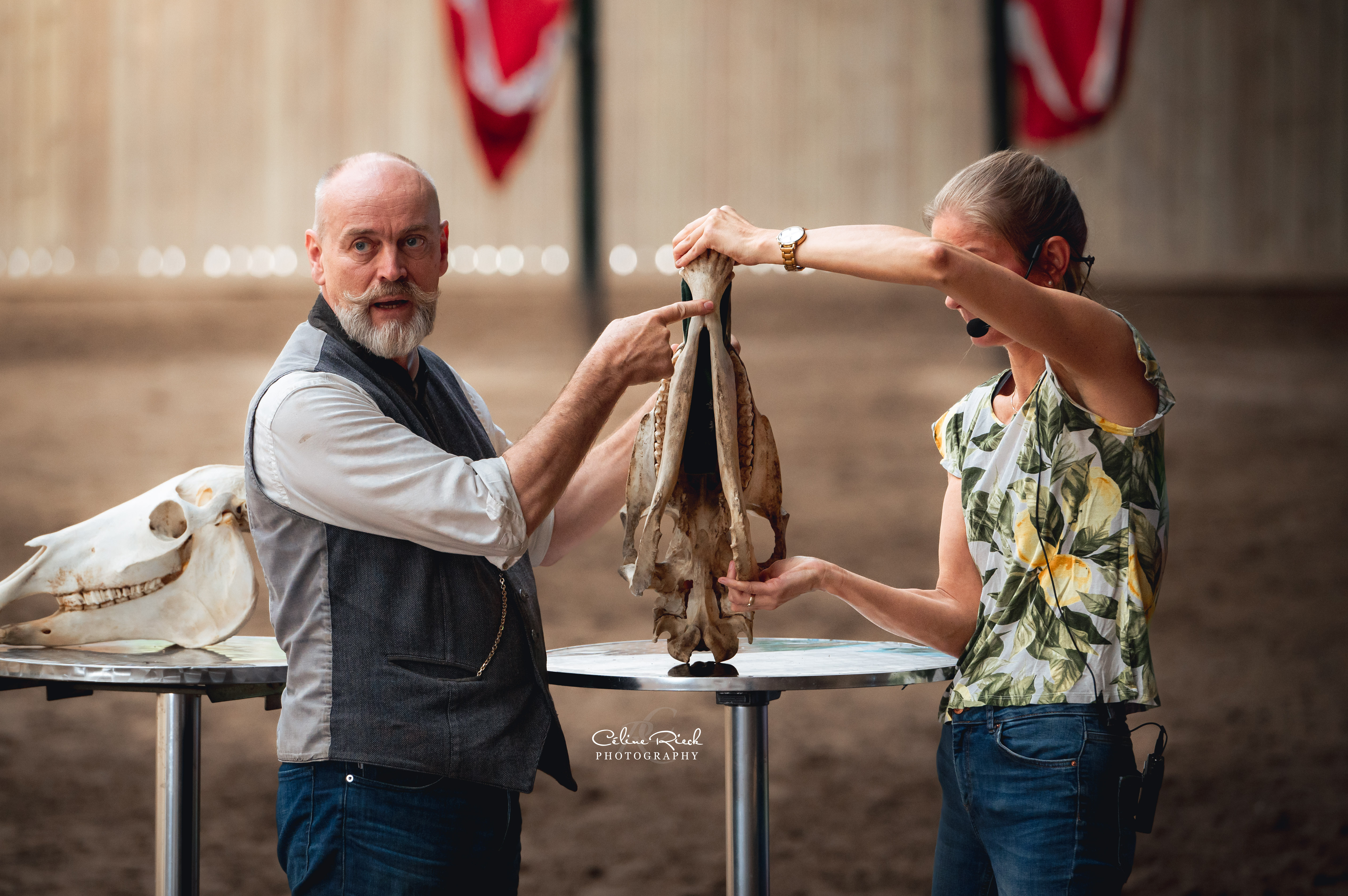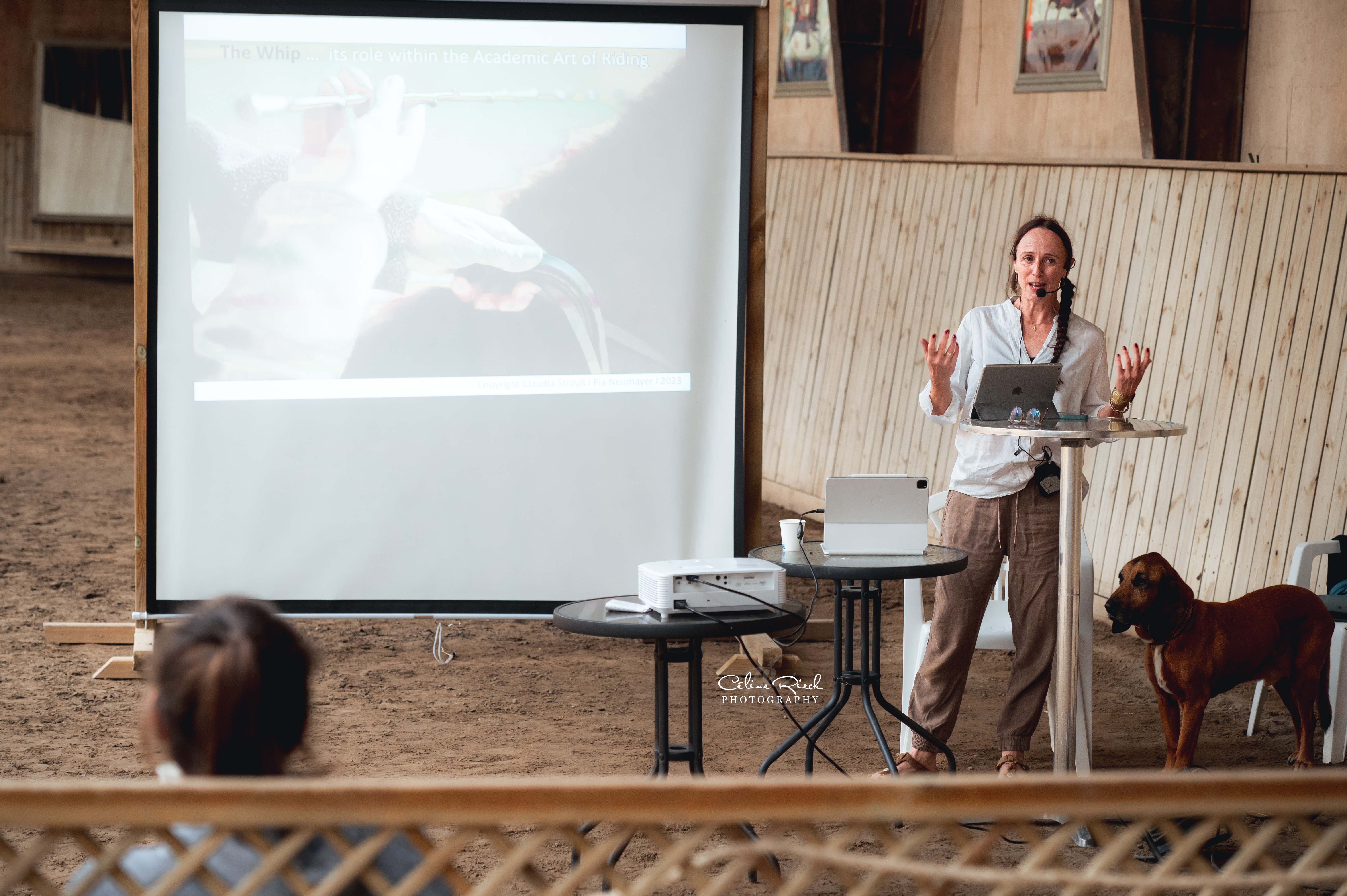 In the afternoon, the members of the knighthood met according to their countries to discuss developments in their countries. I must say it was a rather sad moment for me because despite giving it my best effort, I’m still the only member from Poland. So I joined the German group, because I am from Germany and also teach in Germany occasionally. Then there were lectures by licensed trainers on various topics: Kathrin spoke about body language, Stine gave an anatomy lecture about the structures of the head and neck, and I spoke about how sensory laterality and stress affect the bending. Then we had dinner together and shared stories by the fire place. For me, that’s almost the most important part of summer academy: to meet old friends and make new ones.