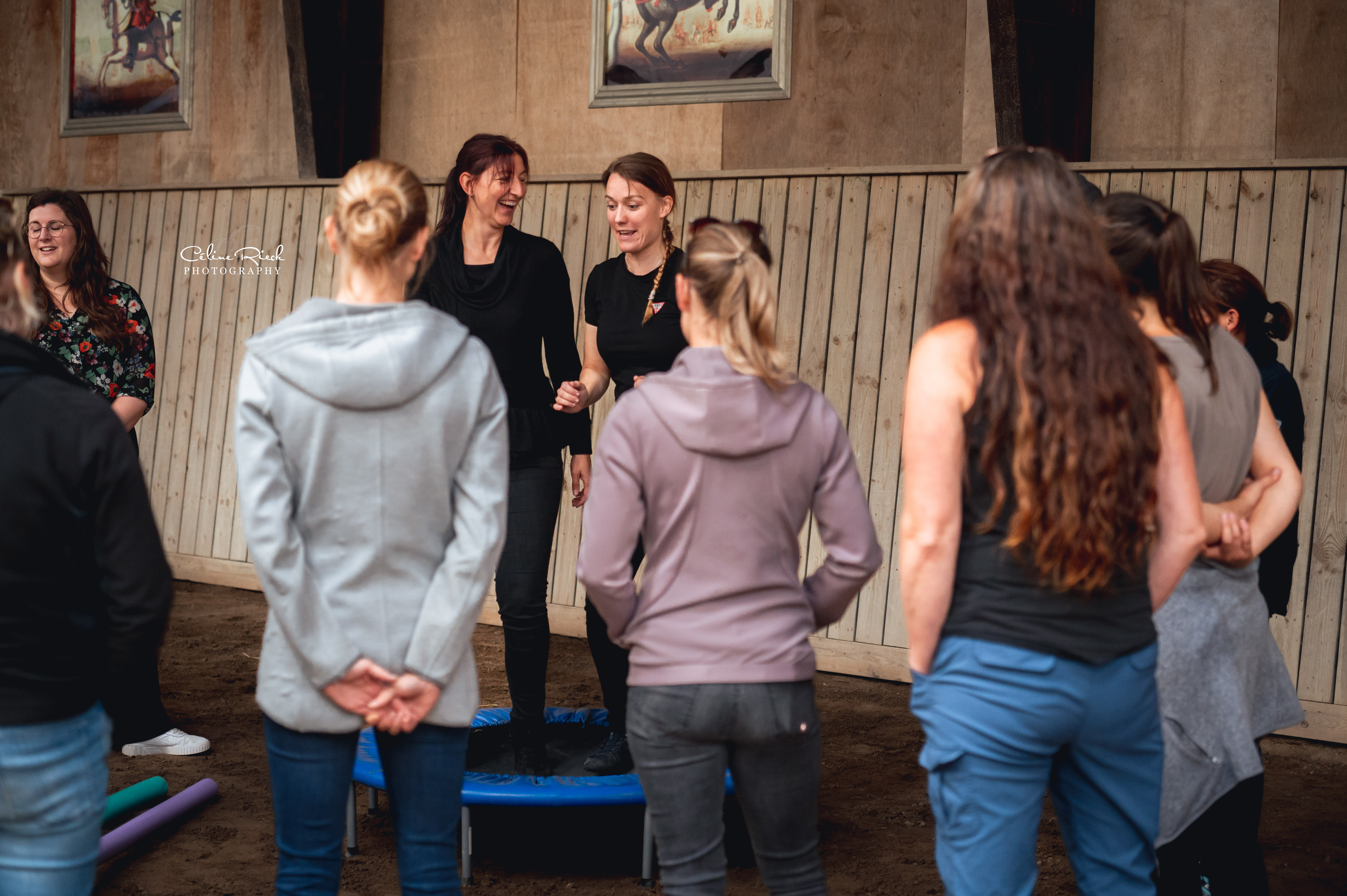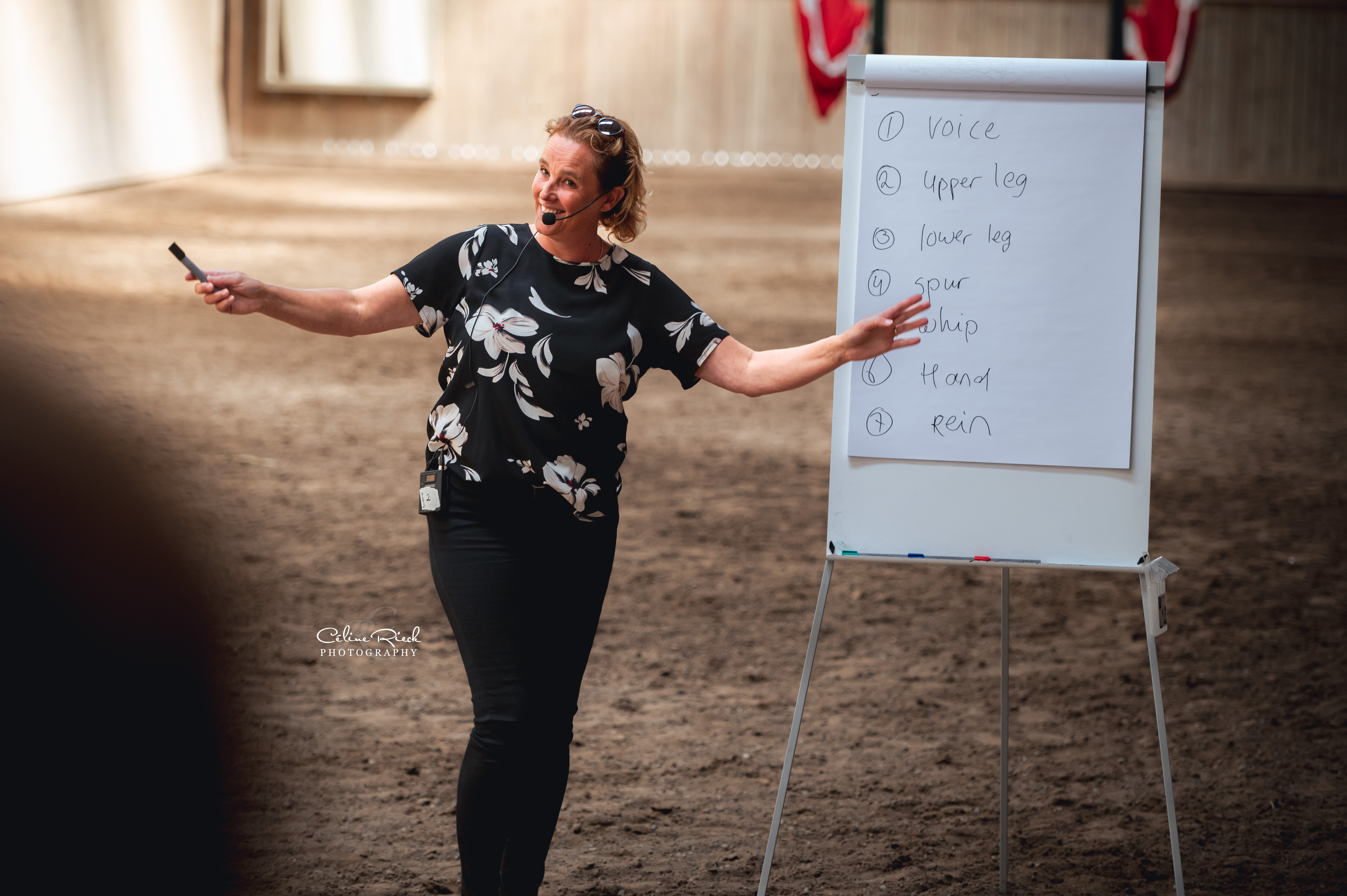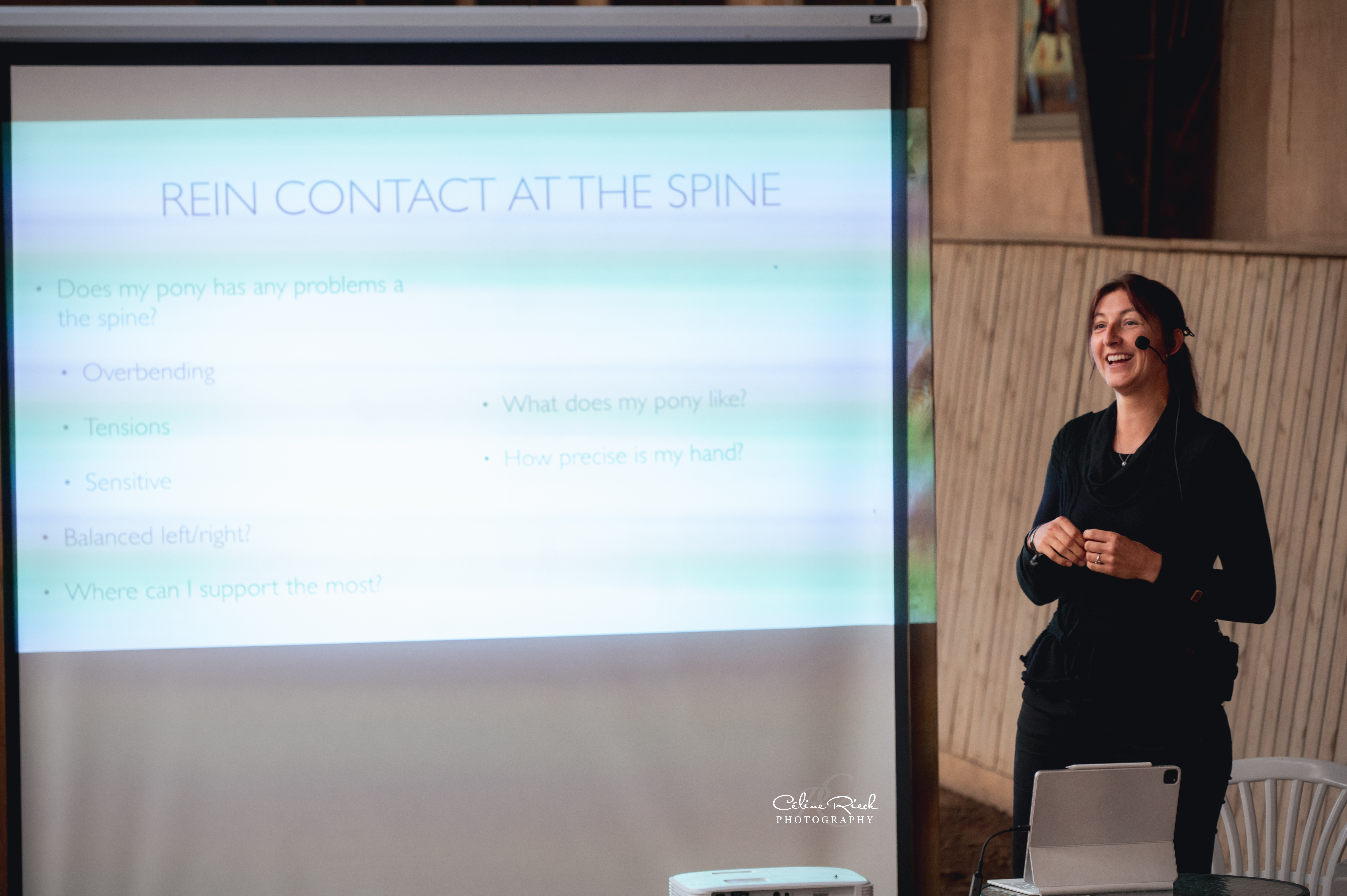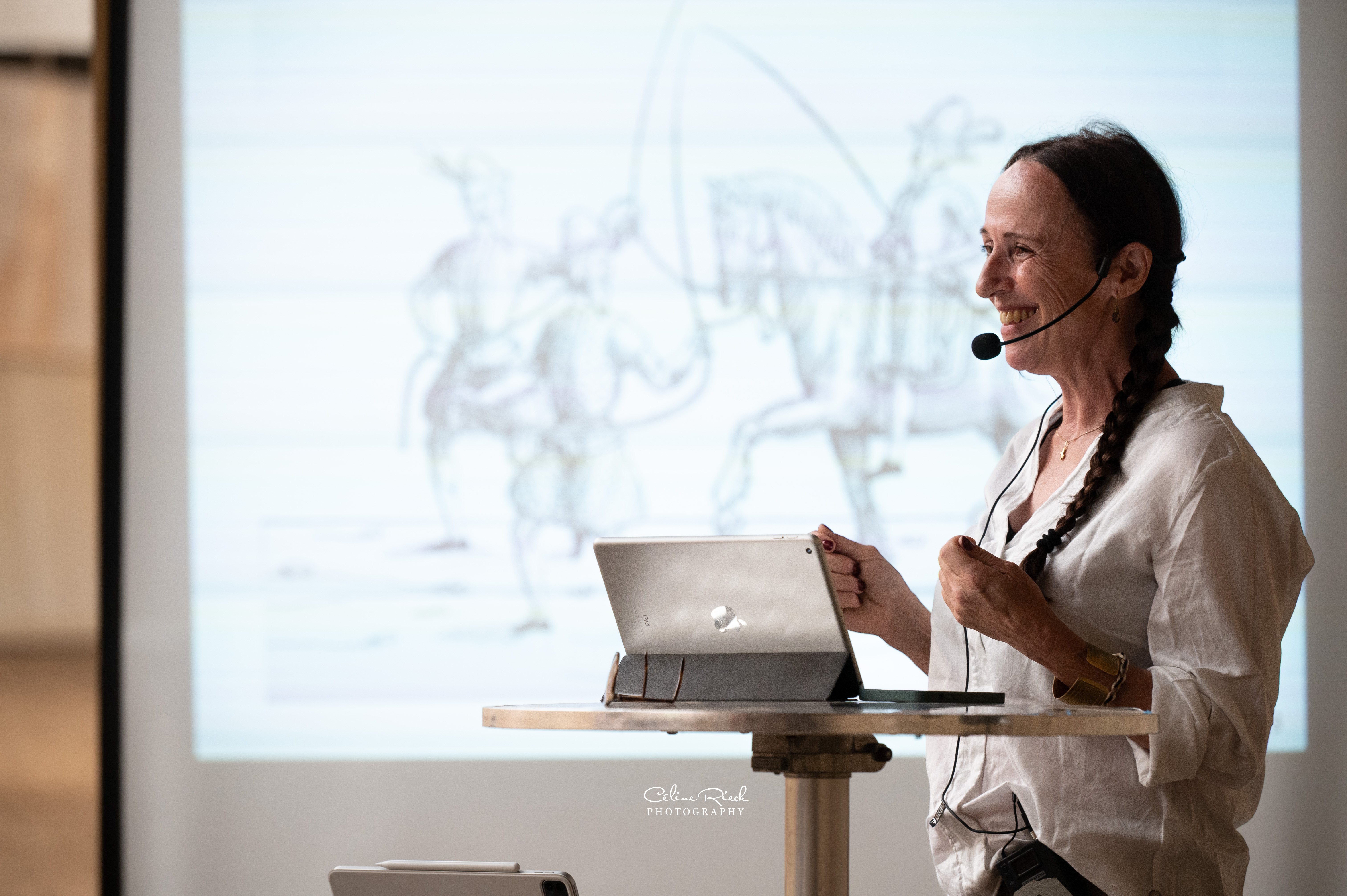 In the afternoon, the members of the knighthood met according to their countries to discuss developments in their countries. I must say it was a rather sad moment for me because despite giving it my best effort, I’m still the only member from Poland. So I joined the German group, because I am from Germany and also teach in Germany occasionally. Then there were lectures by licensed trainers on various topics: Kathrin spoke about body language, Stine gave an anatomy lecture about the structures of the head and neck, and I spoke about how sensory laterality and stress affect the bending. Then we had dinner together and shared stories by the fire place. For me, that’s almost the most important part of summer academy: to meet old friends and make new ones.
