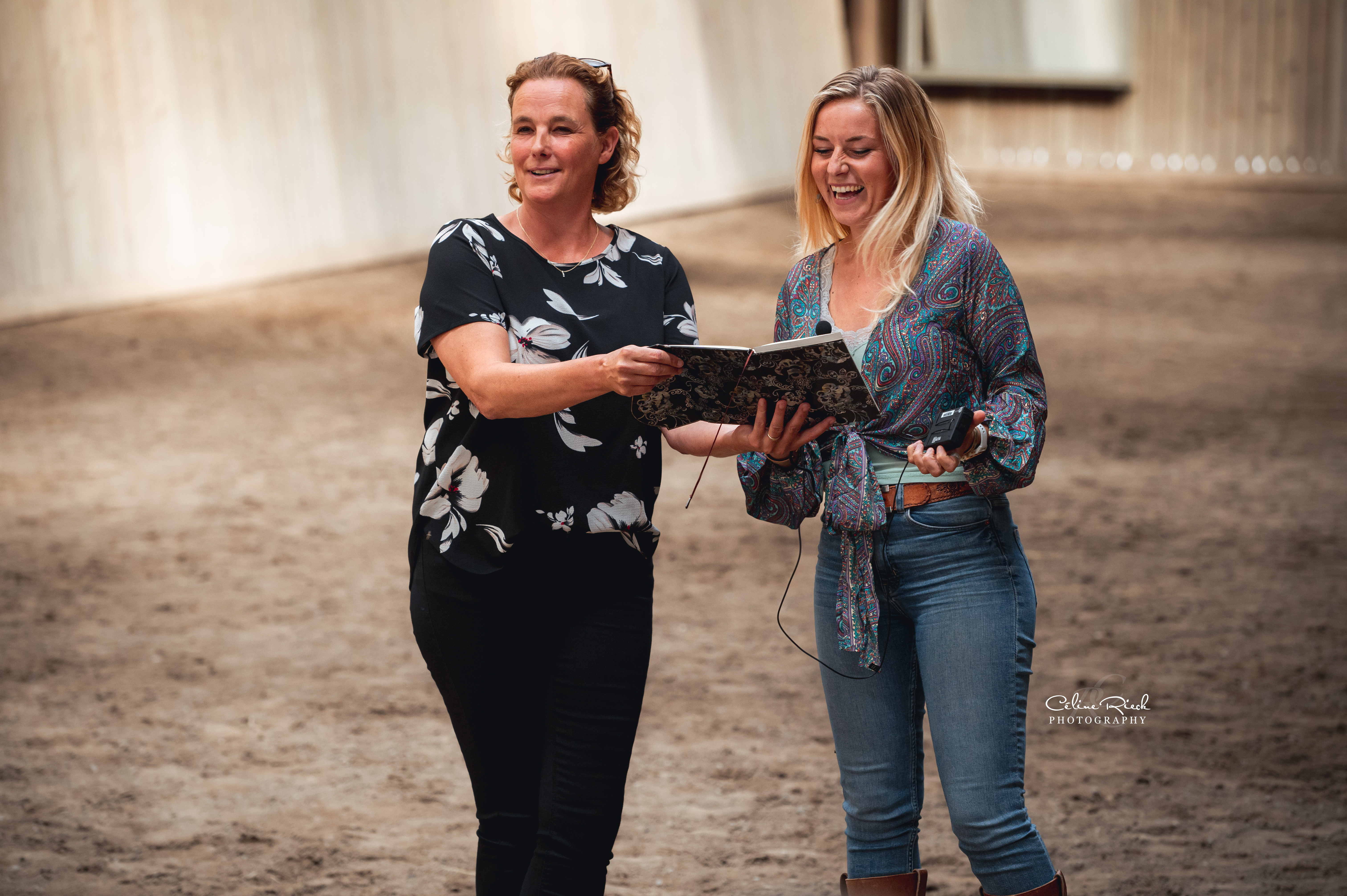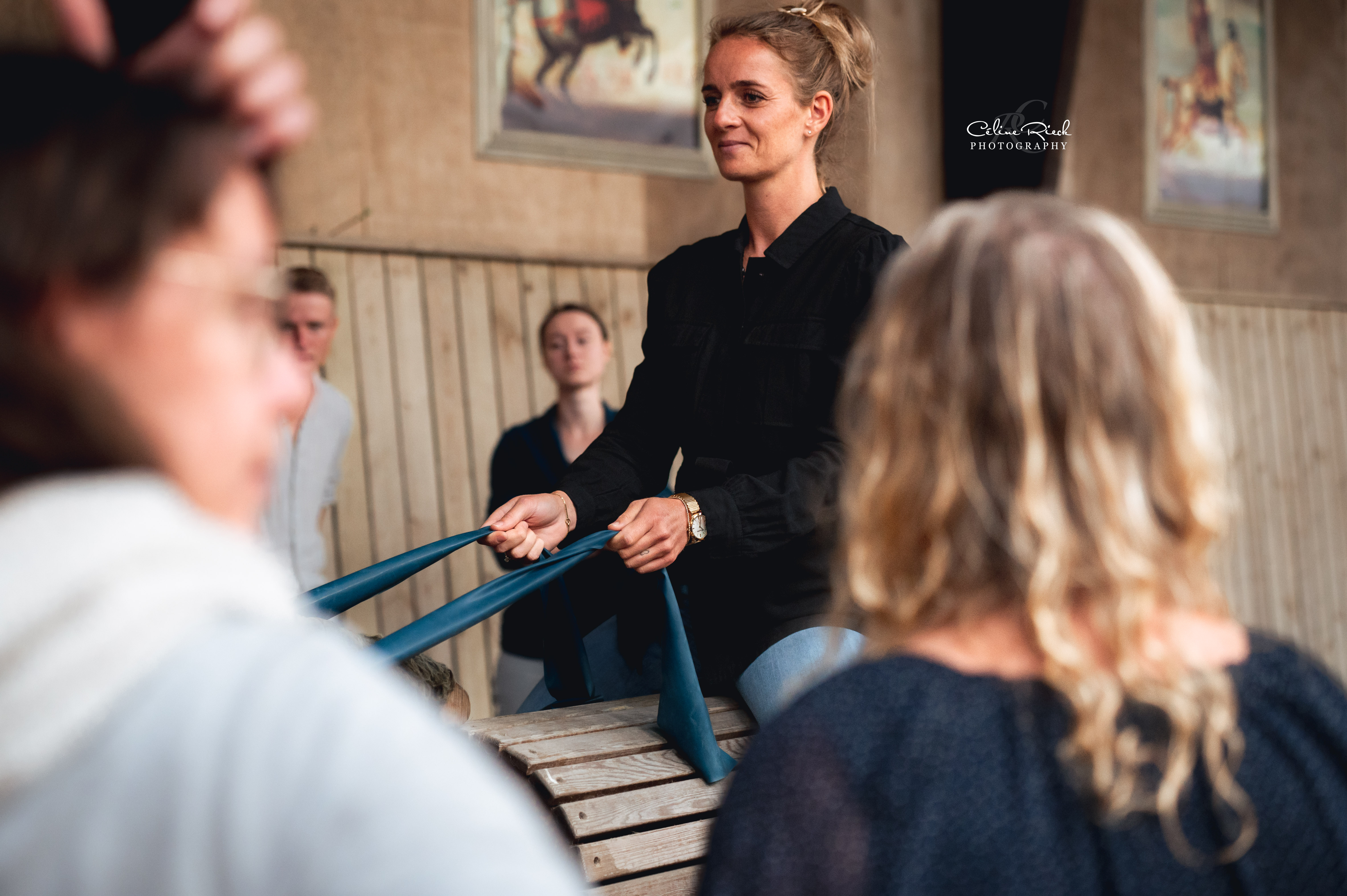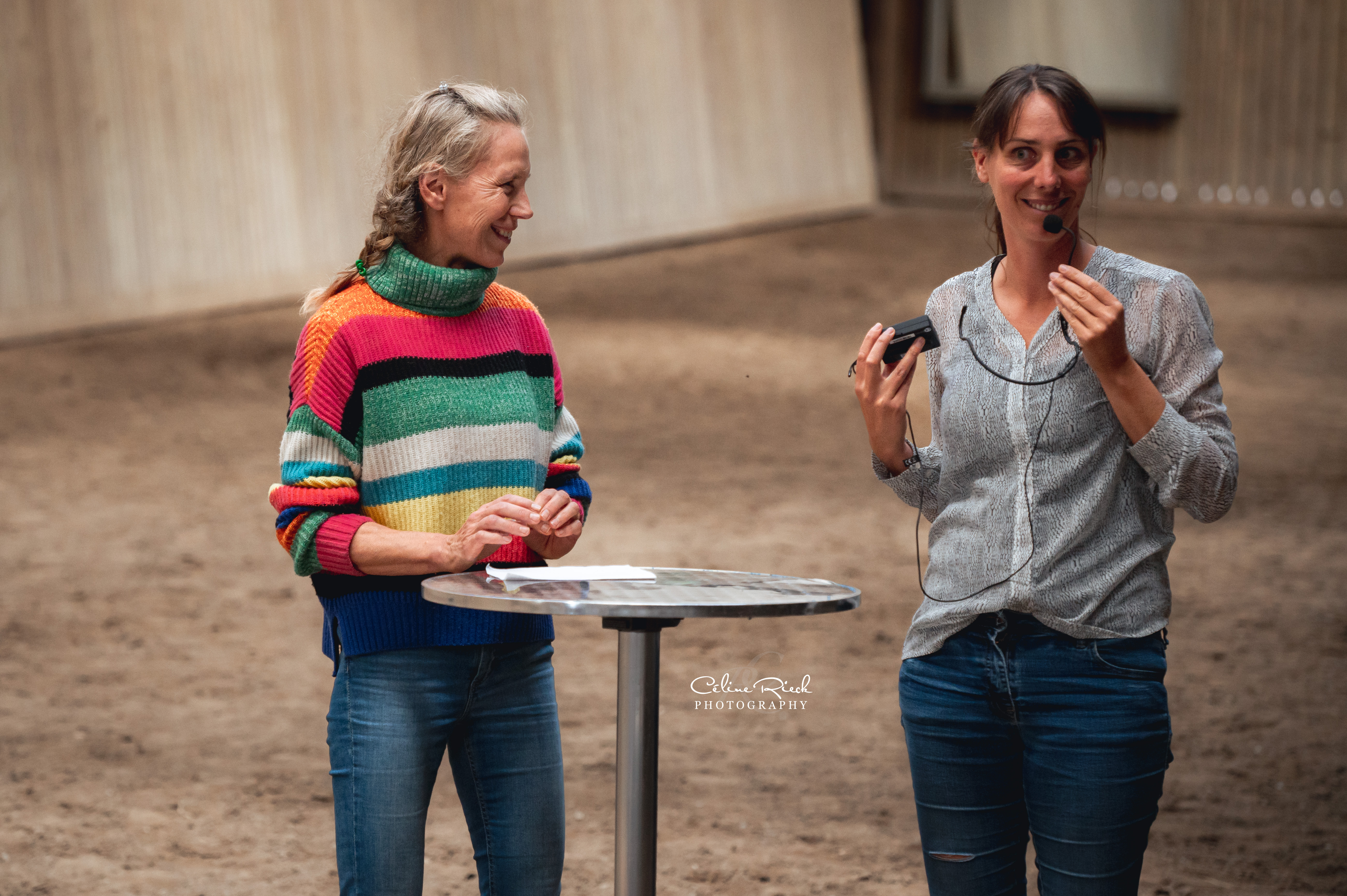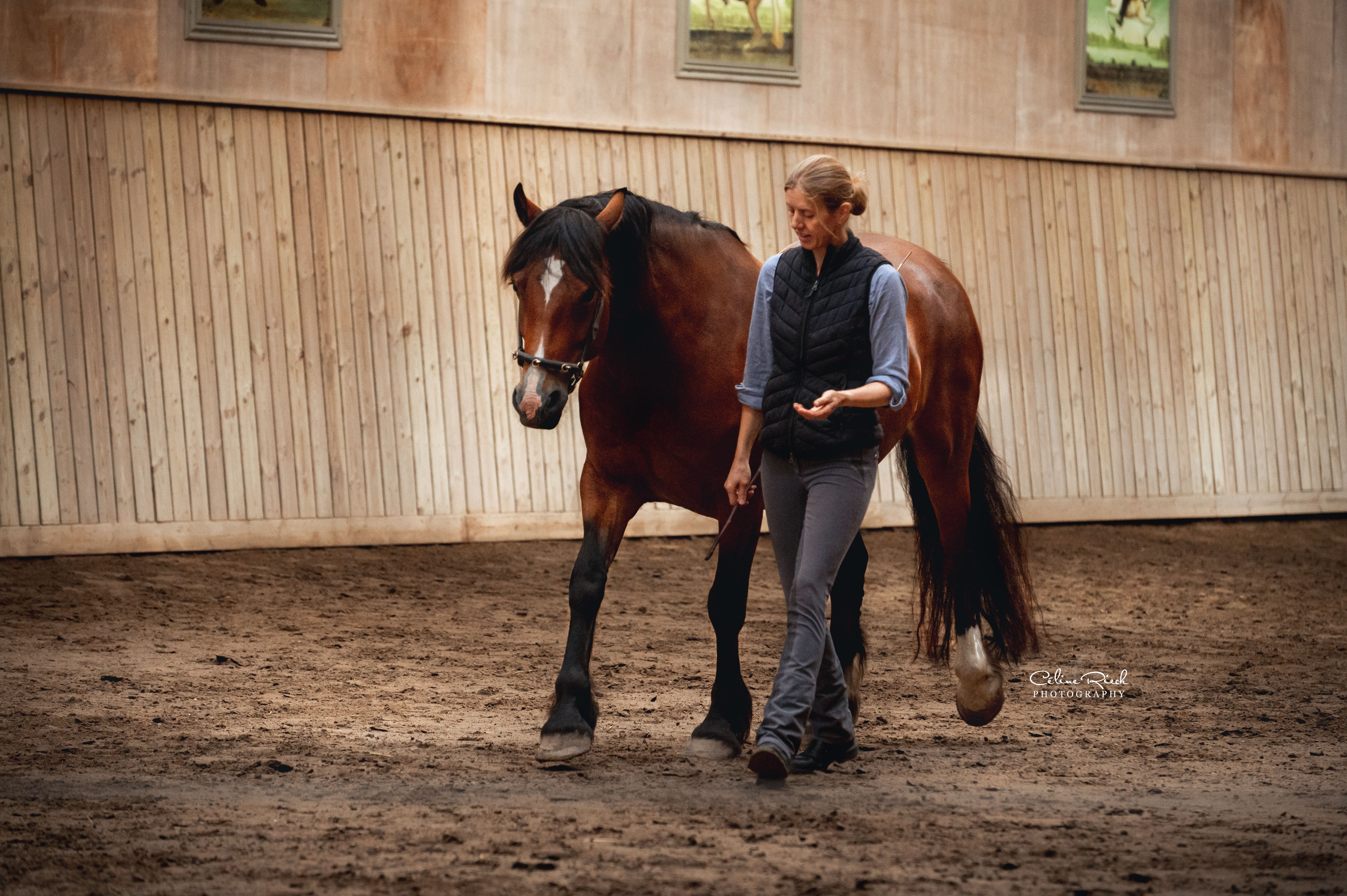 On Thursday the Summer Academy 2023 started with Bent and Kathrin showing the work with their horses. The topic of this year’s academy was “The secondary aids”, after we had been nerding about the seat for two years. Bent’s older horse Tyson is his last horse he educated in the pilars. His younger horses are not educated in the pilars anymore, for good reason: Bent thinks every equestrian discipline should re-evaluate their methods and choose methods according to modern ethical standards. He believes that work in hand and long reining are much better and less stressful ways to educate horses than pilar work, for the simple reason that the horse can move away if it becomes stressed. Bent and Kathrin showed us their latest developments and shared their thoughts about certain problems or challenges.