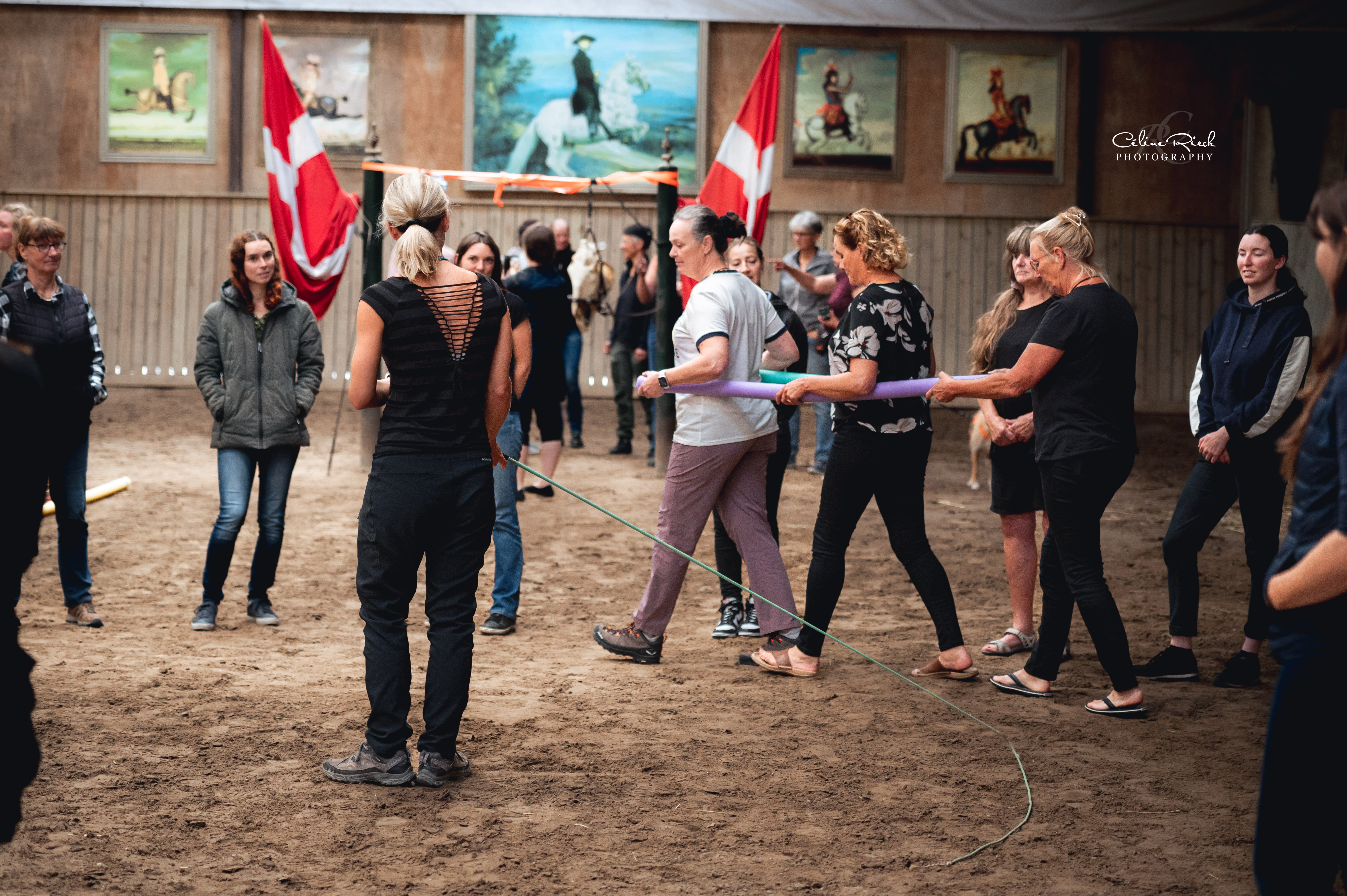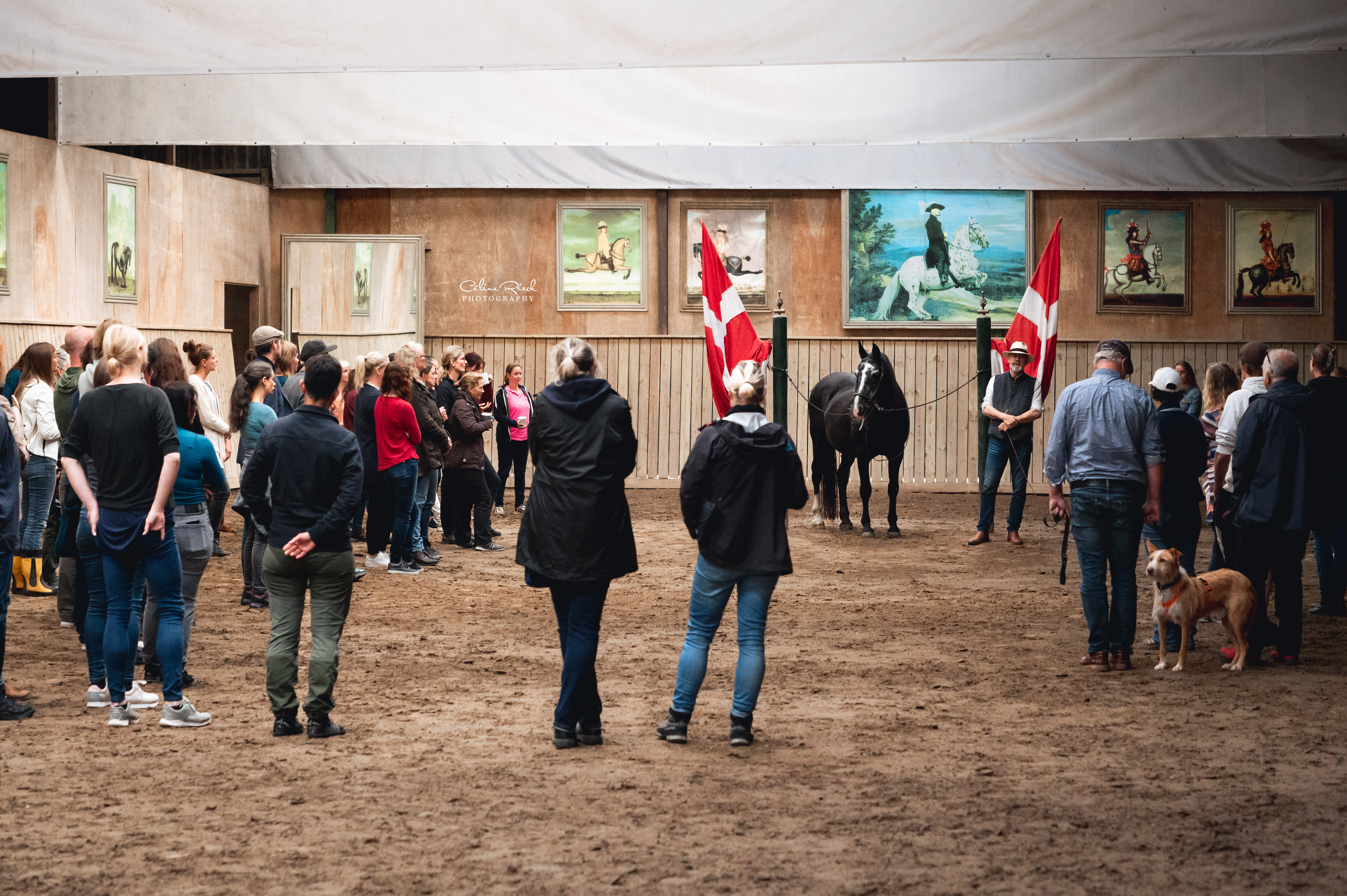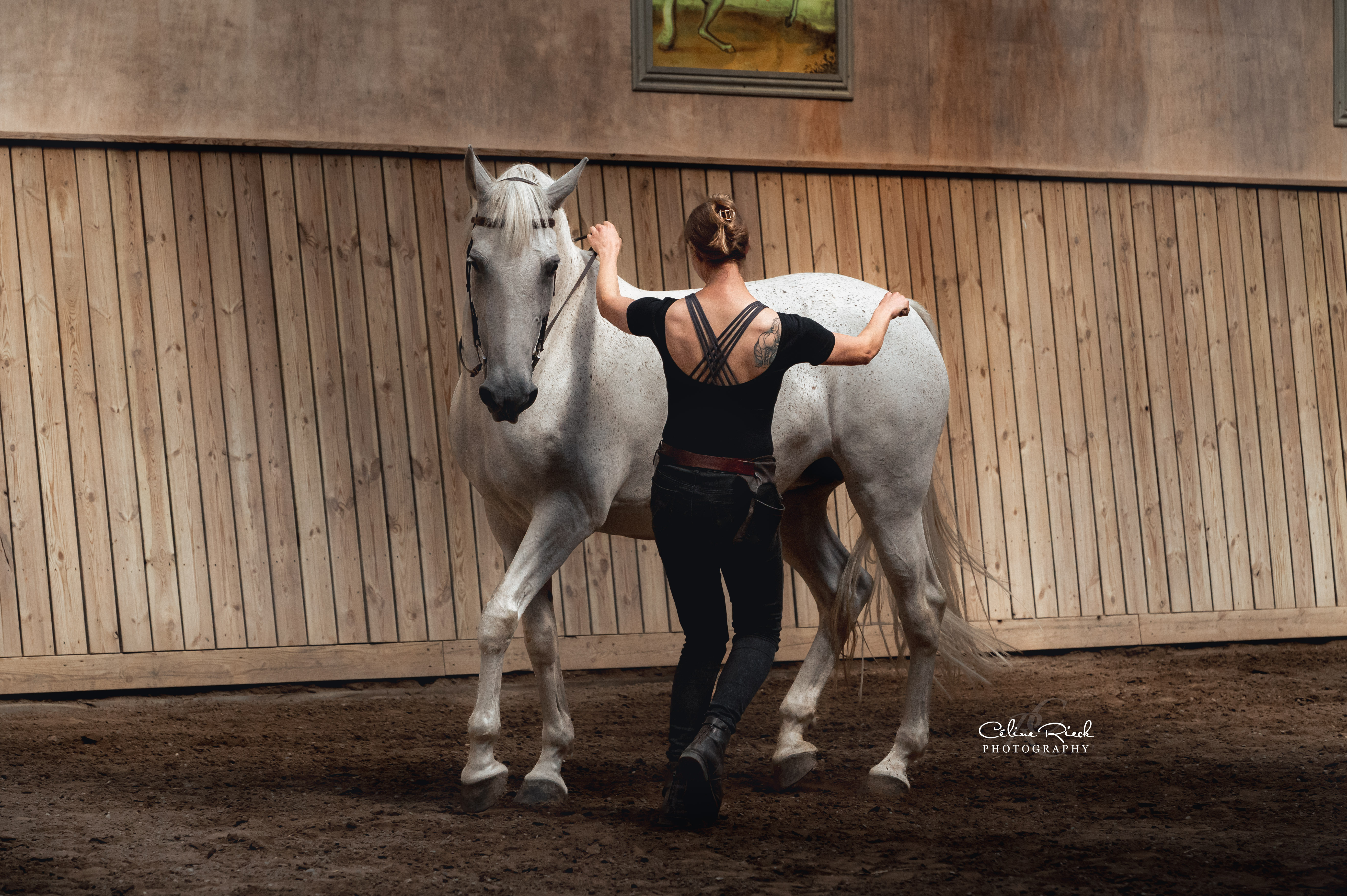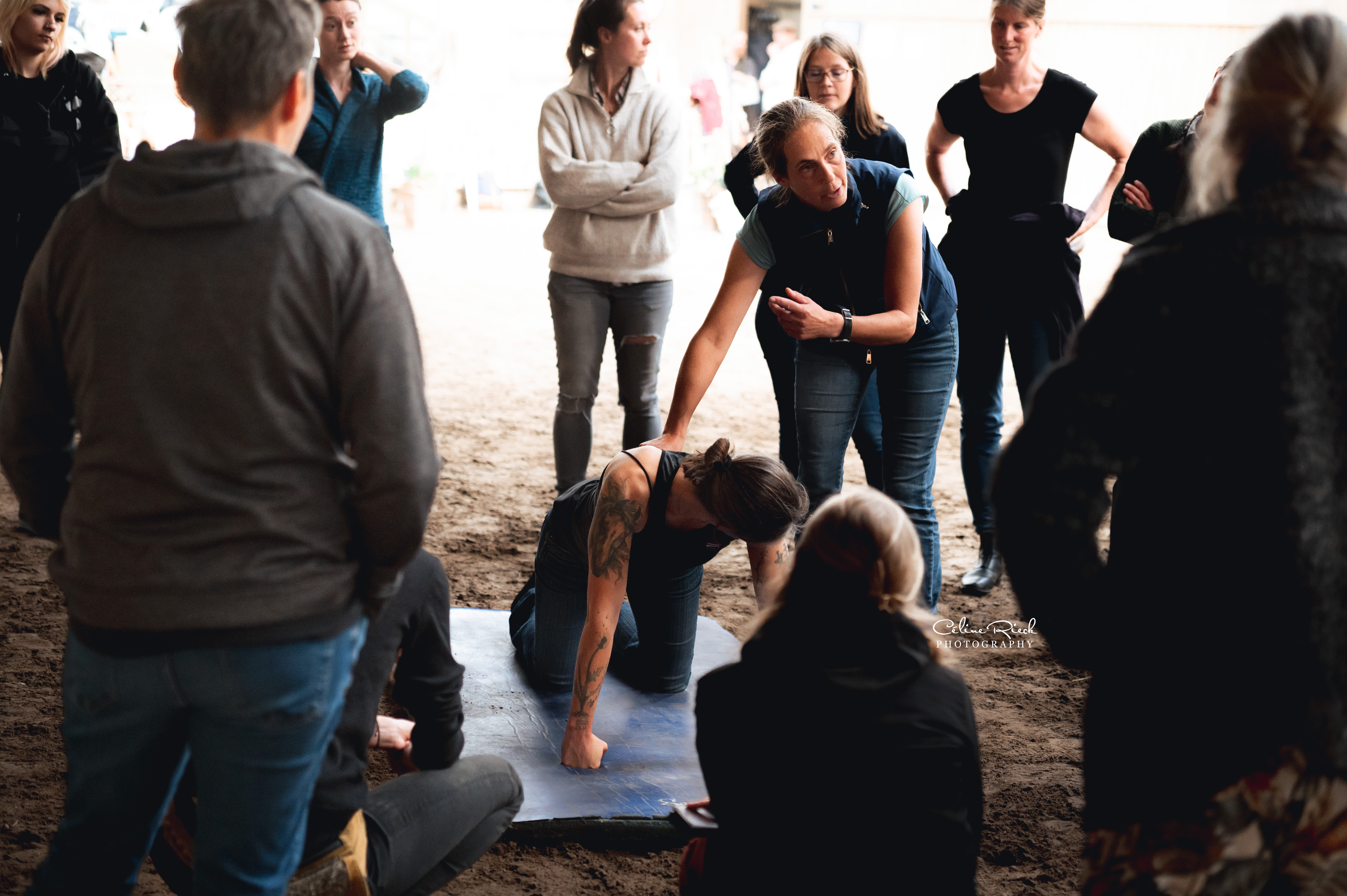 On Thursday the Summer Academy 2023 started with Bent and Kathrin showing the work with their horses. The topic of this year’s academy was “The secondary aids”, after we had been nerding about the seat for two years. Bent’s older horse Tyson is his last horse he educated in the pilars. His younger horses are not educated in the pilars anymore, for good reason: Bent thinks every equestrian discipline should re-evaluate their methods and choose methods according to modern ethical standards. He believes that work in hand and long reining are much better and less stressful ways to educate horses than pilar work, for the simple reason that the horse can move away if it becomes stressed. Bent and Kathrin showed us their latest developments and shared their thoughts about certain problems or challenges.