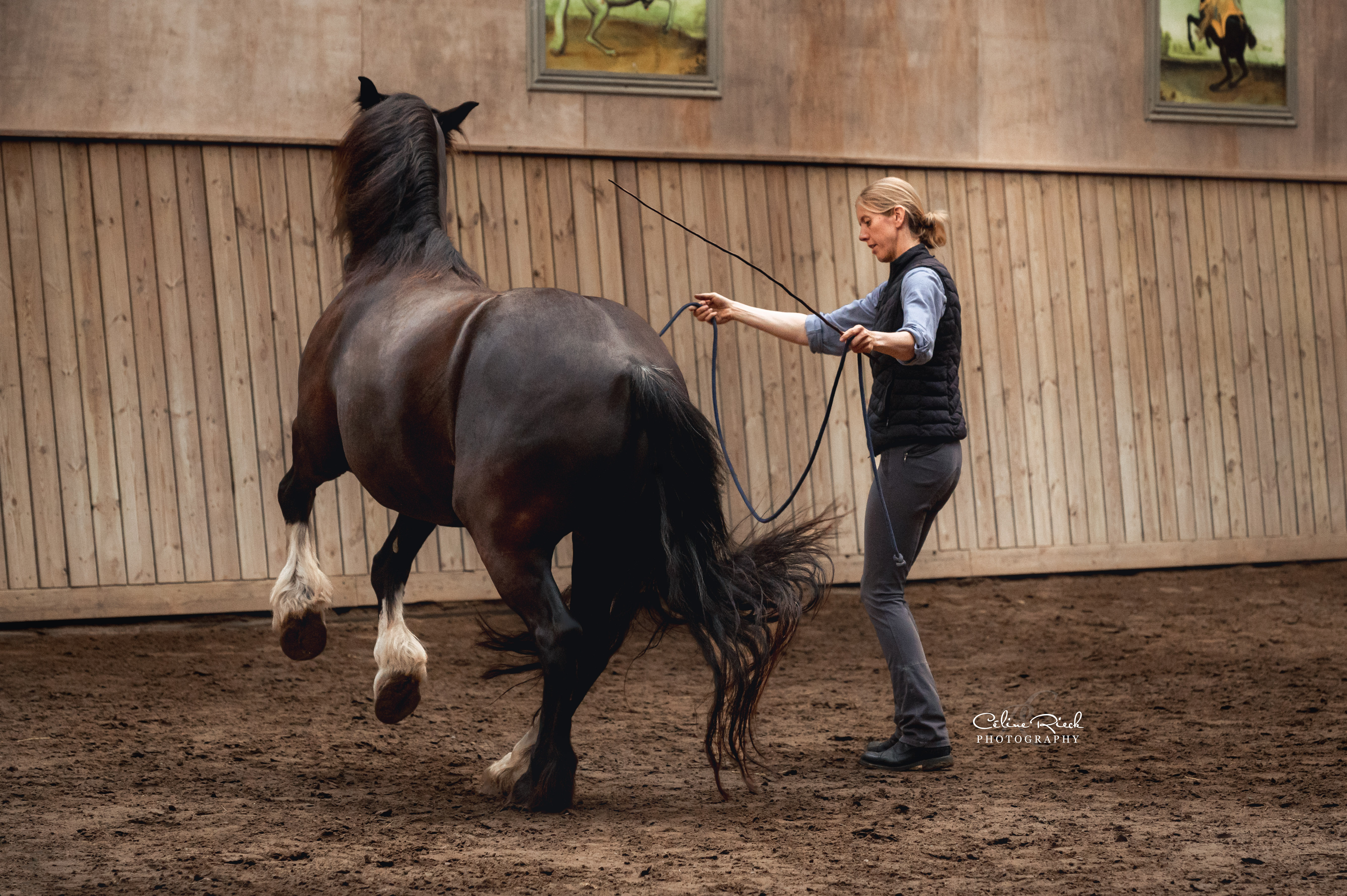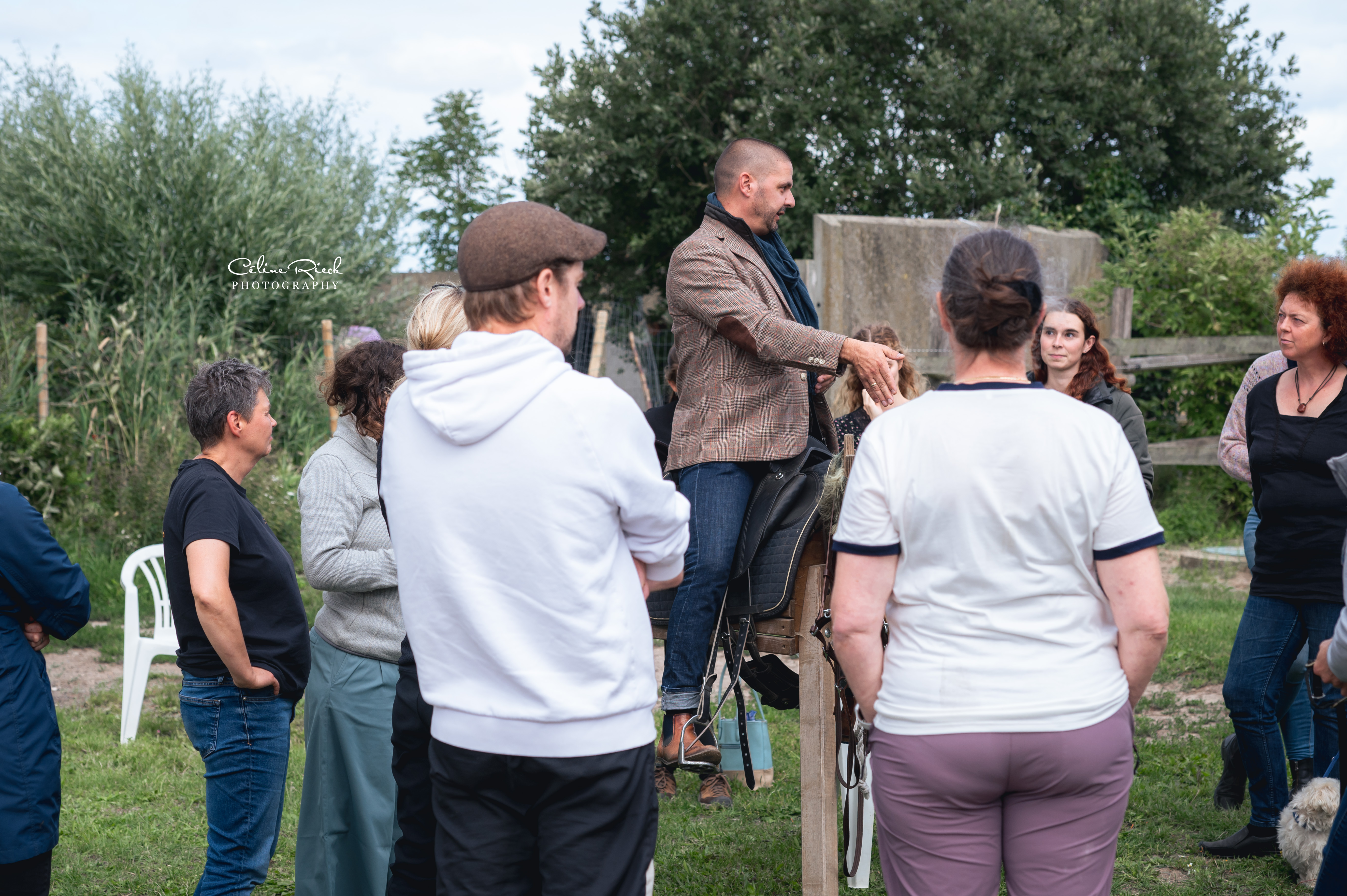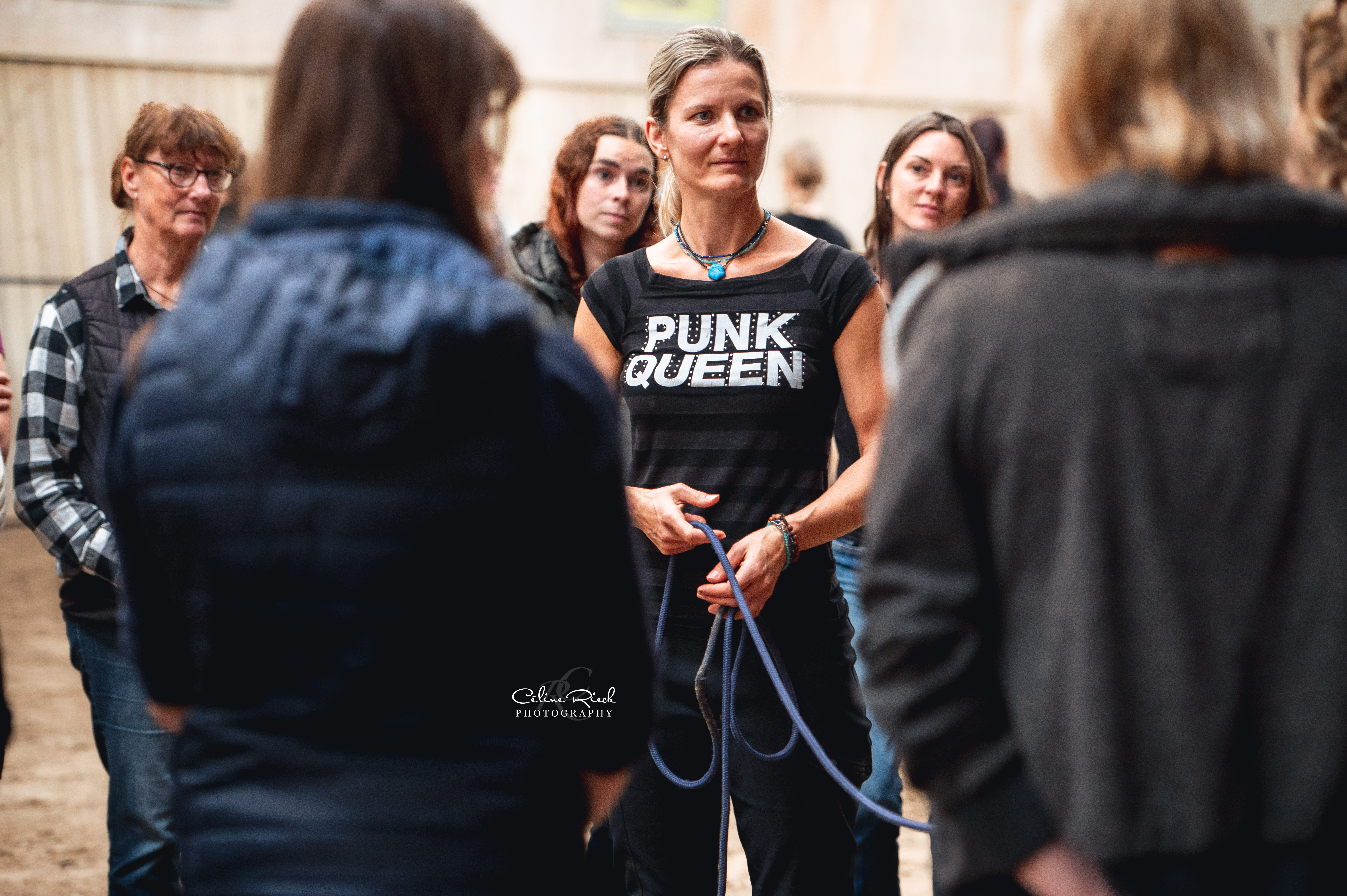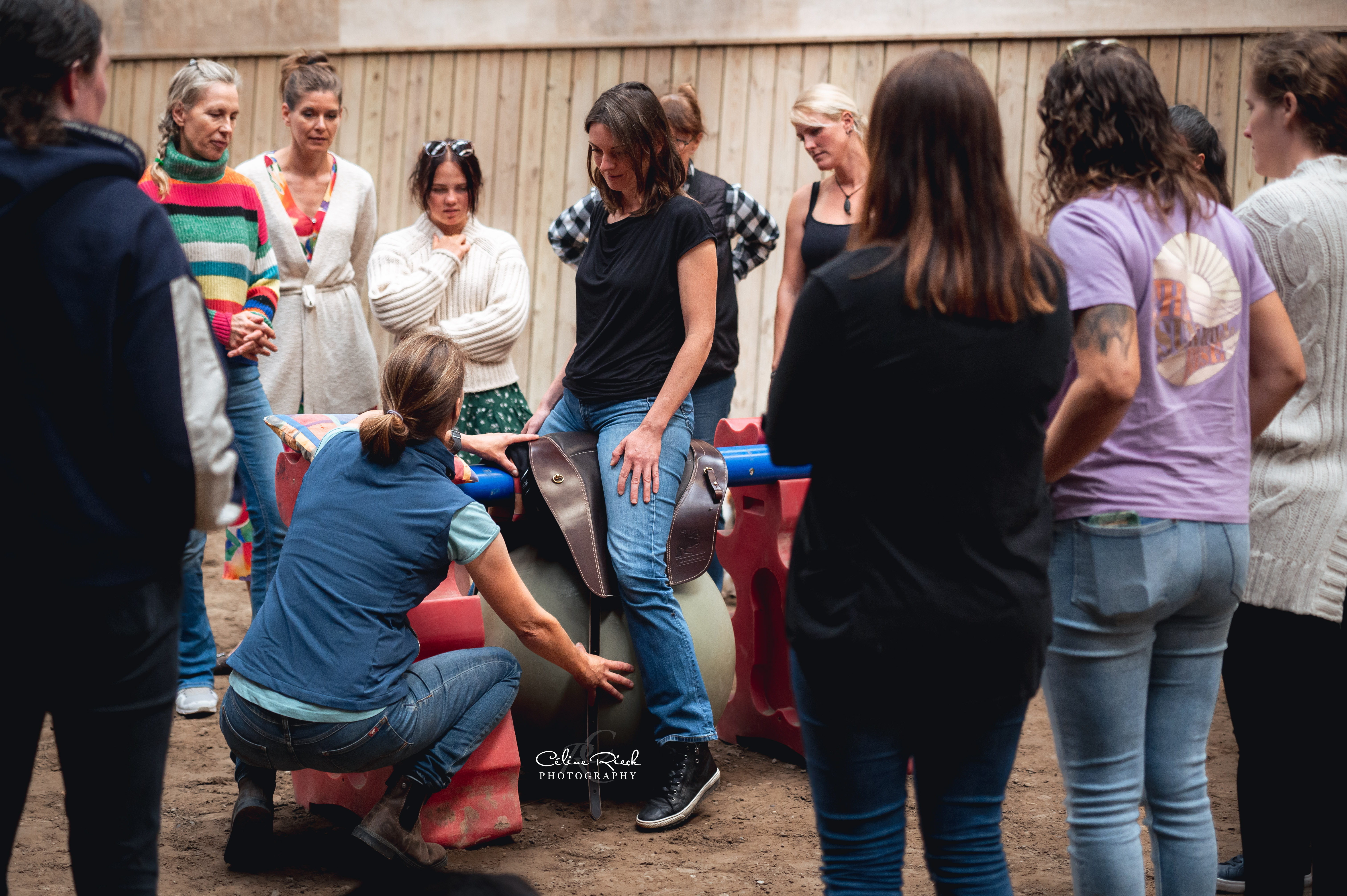 On Thursday the Summer Academy 2023 started with Bent and Kathrin showing the work with their horses. The topic of this year’s academy was “The secondary aids”, after we had been nerding about the seat for two years. Bent’s older horse Tyson is his last horse he educated in the pilars. His younger horses are not educated in the pilars anymore, for good reason: Bent thinks every equestrian discipline should re-evaluate their methods and choose methods according to modern ethical standards. He believes that work in hand and long reining are much better and less stressful ways to educate horses than pilar work, for the simple reason that the horse can move away if it becomes stressed. Bent and Kathrin showed us their latest developments and shared their thoughts about certain problems or challenges.