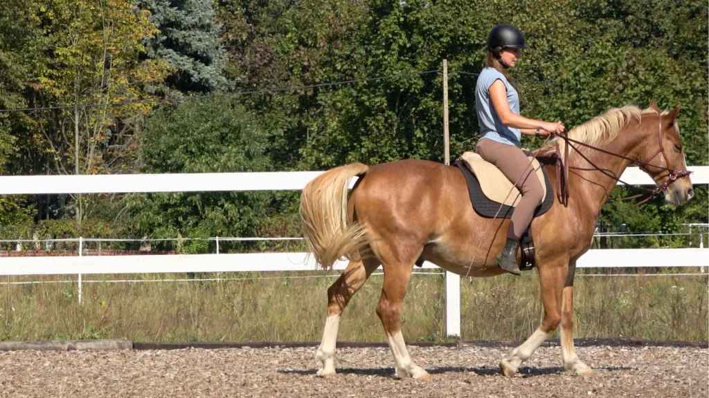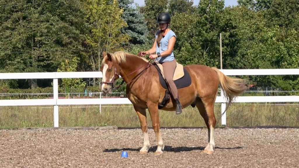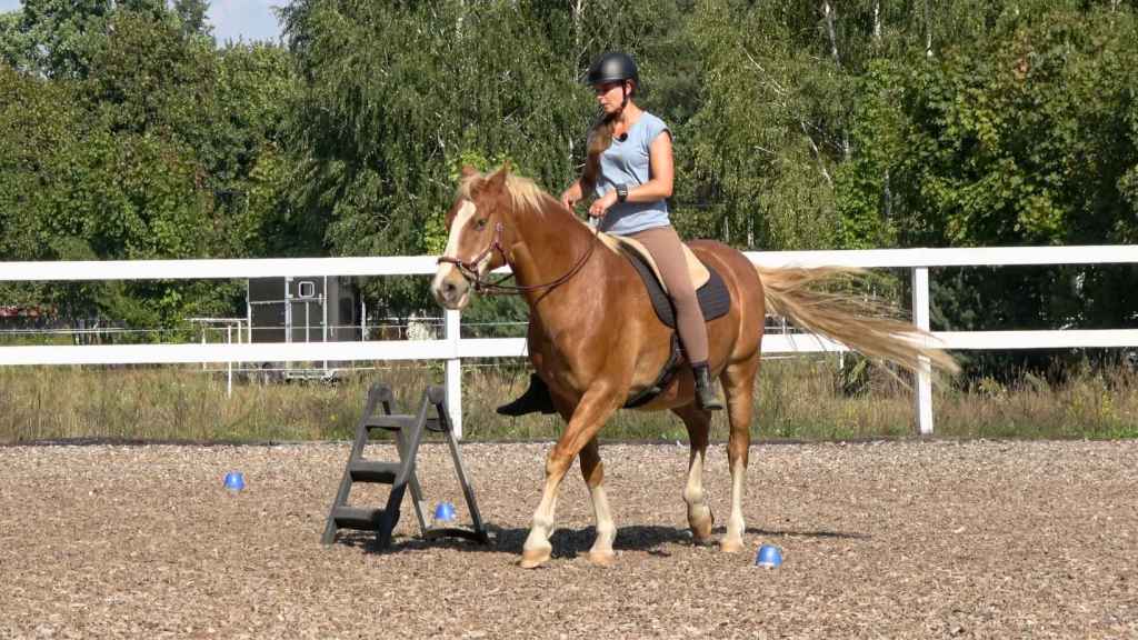 He knows how to come up to the mounting aid and wait there. He stands still for mounting. It took him a while to be ok with weight on the back, which I have introduced slowly and I have observed his thresholds. He found it very strange to have weight on his back.