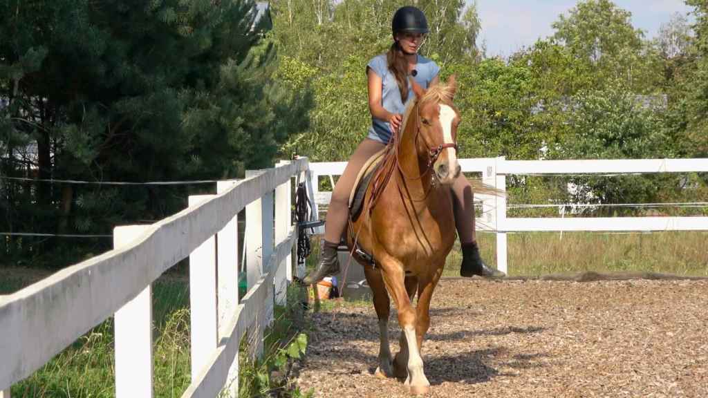 For the first three rides, I had a student help me from the ground. She just sat on his back, and I did groundwork with him. There were no problems, although he went over threshold sometimes (dangling, nipping). I kept the sessions short (a few minutes). He didn’t make the impression that the weight on his back is a problem or that there is any physical discomfort. Until this point, it all went very well in fact.